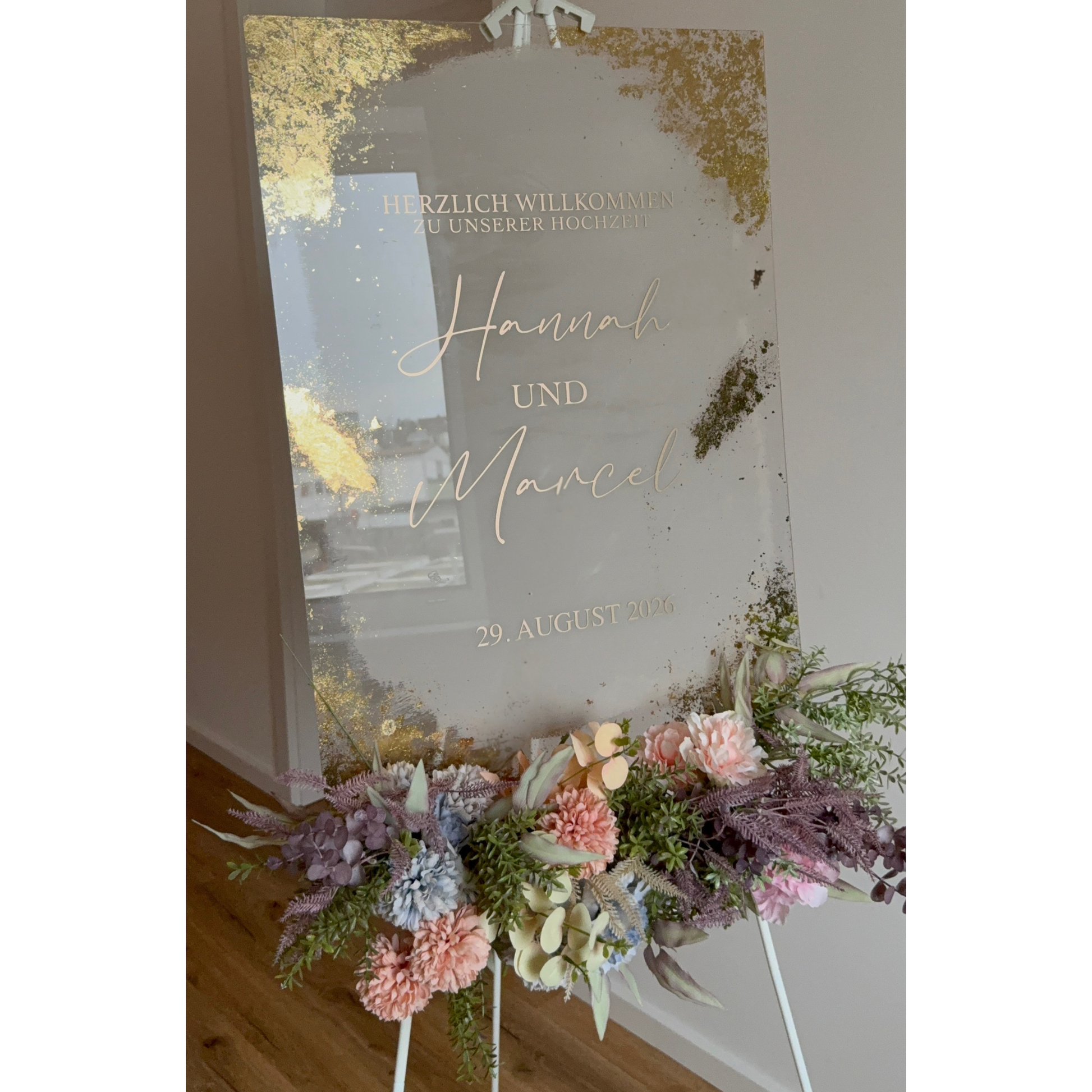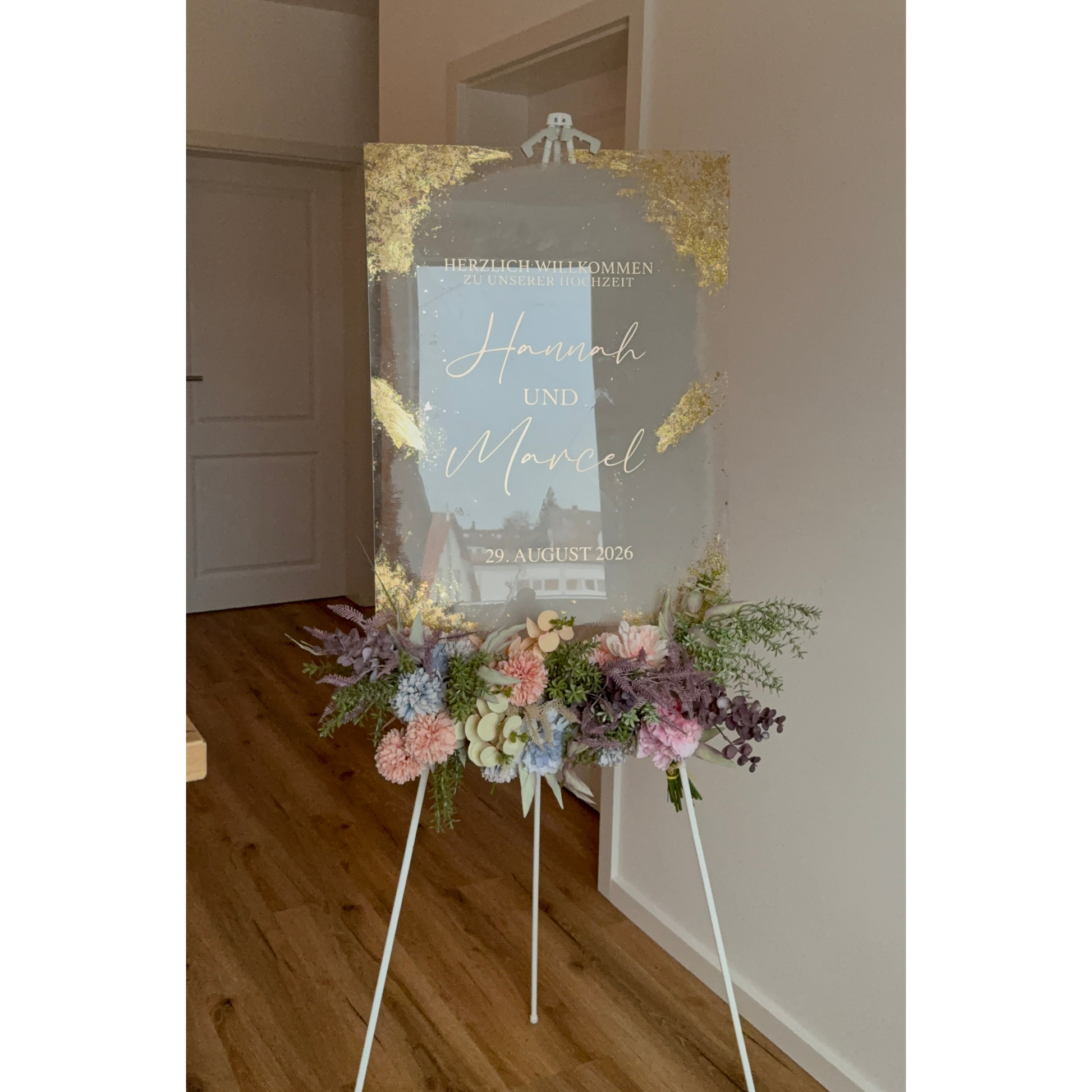 Empfangstafel wird ohne Deko und Staffelei geliefert.